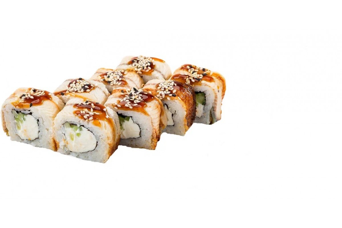Состав: рис, сливочный сыр, угорь, огурец, соус унаги